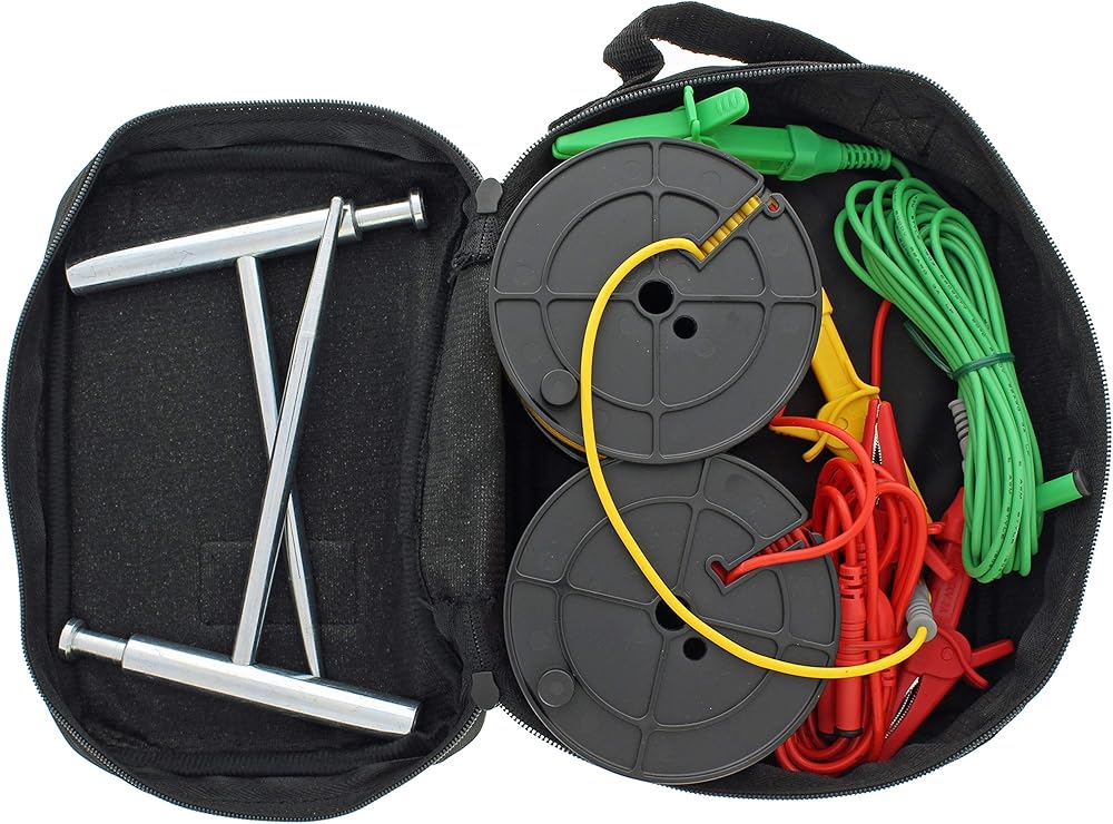 INCLUDES LEADS AND ELECTRODES: Includes two 100 foot lead spools and one 15 foot green, yellow and red color-coded test leads and 2 electrodes.