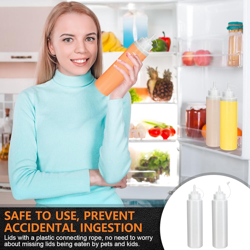 🍯 No-leak Lids: Tight-fitting attached cap closure prevents spillages and leaking,can be easily removed and snapped on,caps are attached to lids,so you don't have to worry about losing them.