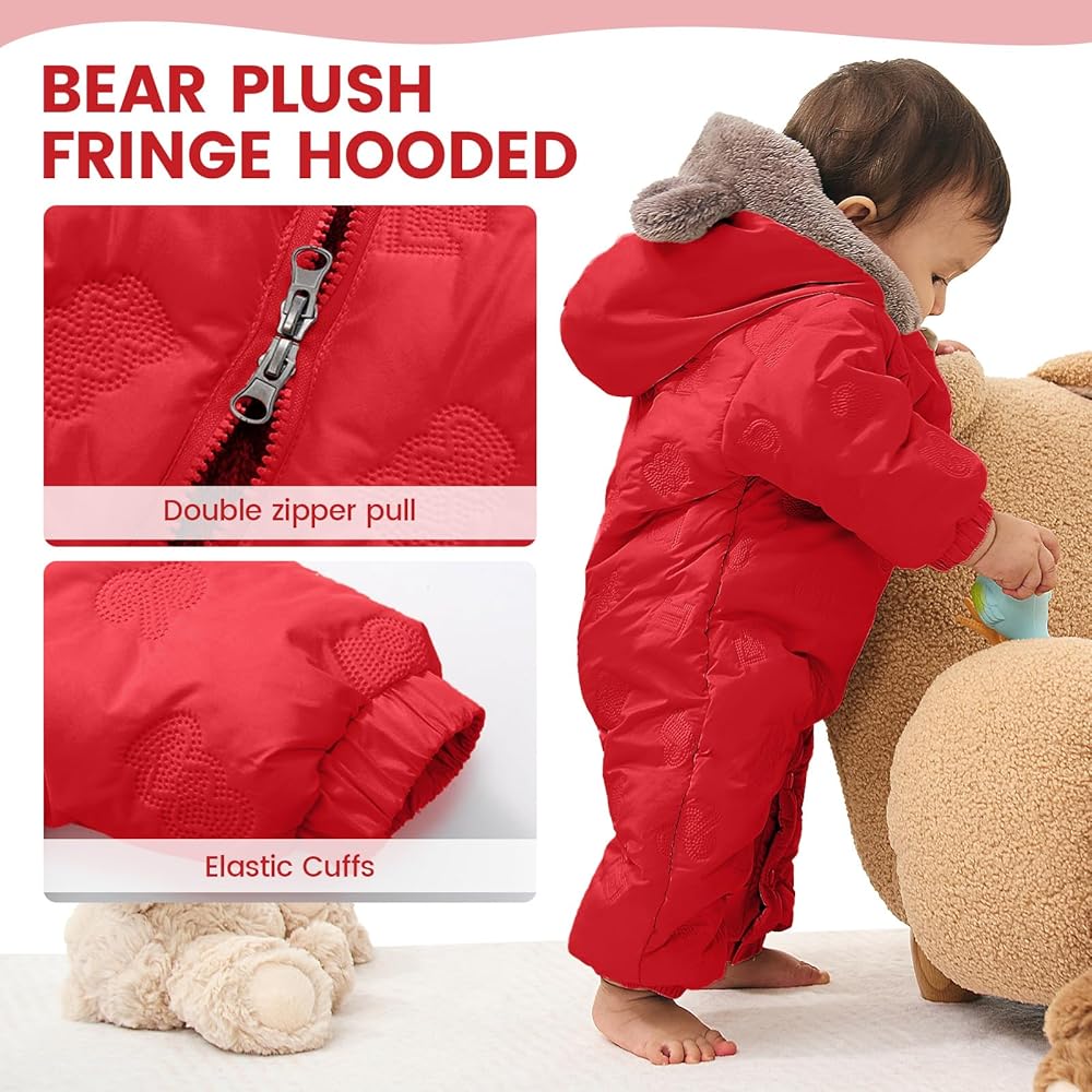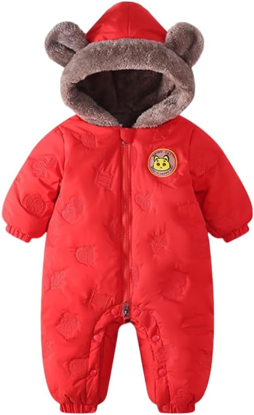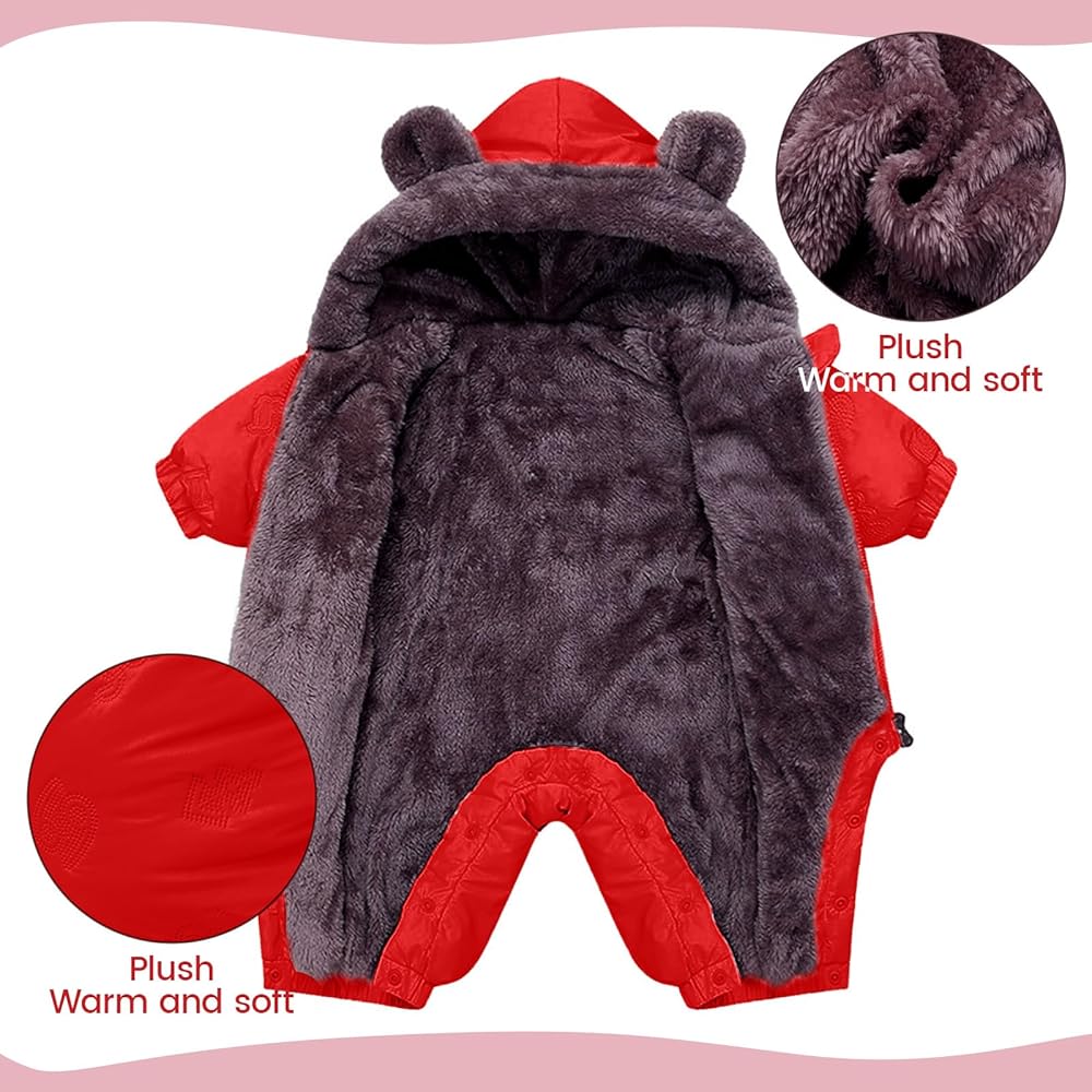 【🐻 Cute Bear-Ear Hood】Baby Snowsuit signature bear-eared hood turns daily outings into adorable moments. This baby coat is also suitable for festivals such as birthdays, Halloween, Christmas, etc. It can also provide sufficient warmth during winter outdoor activities.