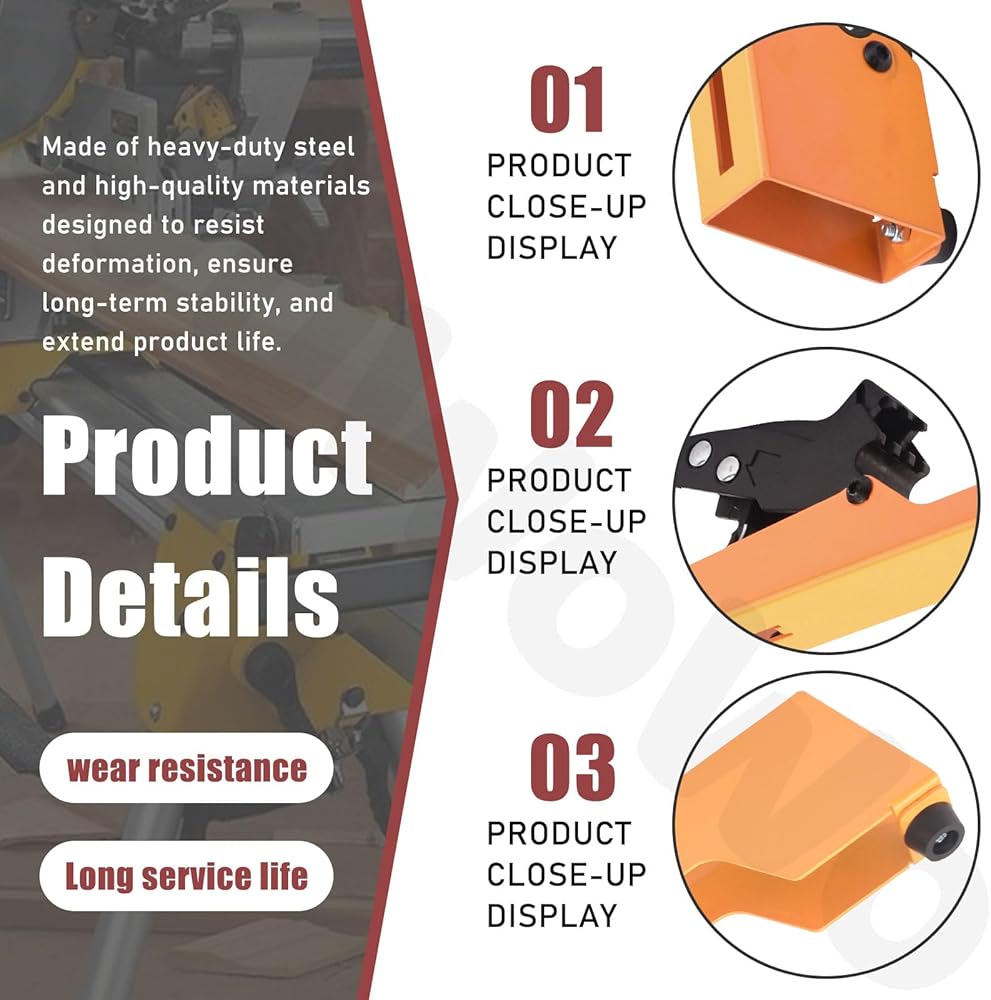 Equipped with easy-to-install clamps for quick tool installation and removal; pre-drilled holes and included hardware further simplify the installation process; The anti-slip foot pads on the miter saw mounting bracket prevent scratching of materials, combining practicality with protection