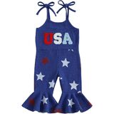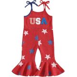 Toddler Girls Christmas Flare Pants Overalls Letter Embroidery Lights String Print Sleeveless Bell Bottom Romper