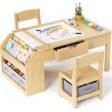 SPACE SAVING: Hidden storage compartments and large drawers are cleverly integrated underneath the kids craft table, and the spacious side double shelves and 3 removable storage drawers make it easy to organize books, drawing tools, toys and other essentials. The toddler table and chair set's mobile design allows you to easily set it up in a child's room, playroom, daycare center or tutoring facility.