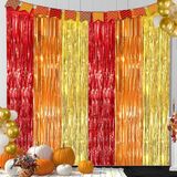 YQUQWN 2 PCS Fall Metallic Foil Fringe Curtains 3.3 X 6.6 ft Autumn Harvest Photo Booth Props Backdrop Red Gold Yellow Fall Thanksgiving Decorations Party Supplies Background