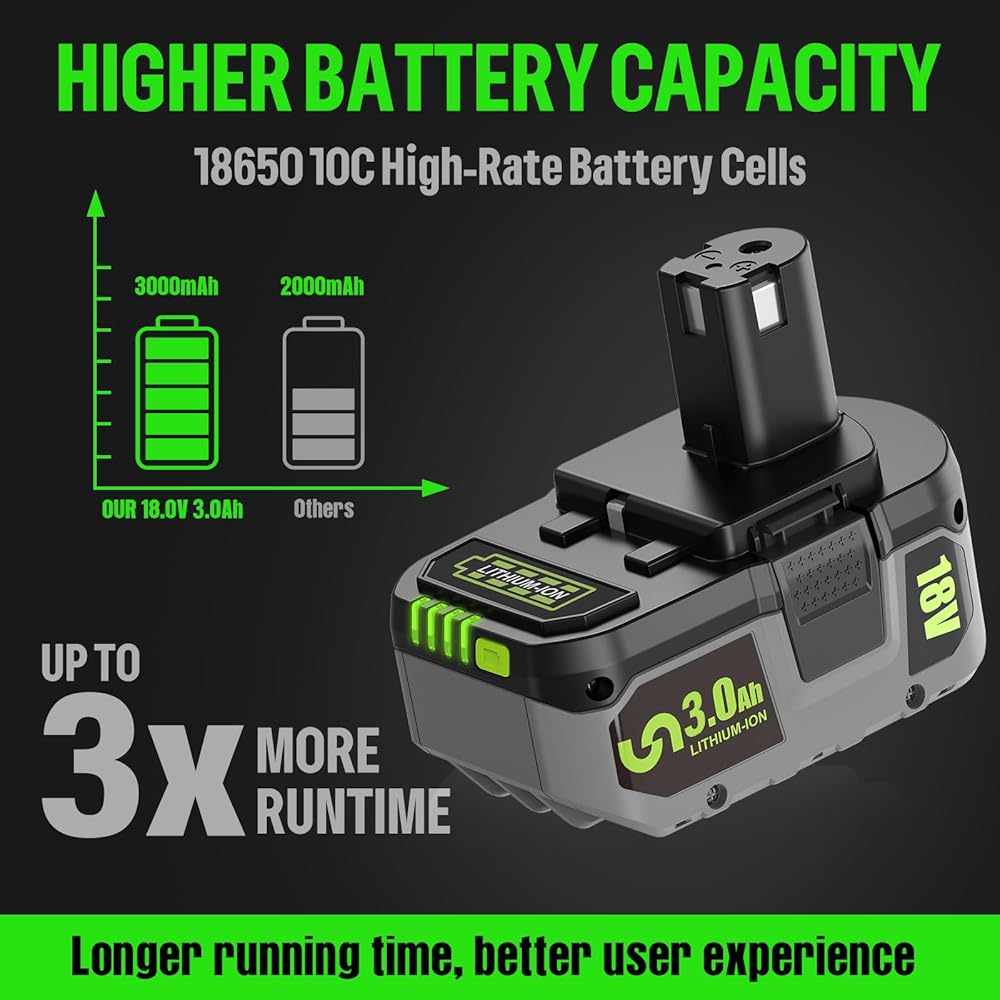 🌳【Compatibility】Replace for Ryobi Power Tools18-Volt P122 P102, P103, P104, P105, P107, P108, P109 and compatible with all Ryobi 18V ONE+ System Cordless Power Tools. Support fast charge for Ryobi 18V 260051002 P113 P117 P118 BCL1418 original chargers. Power Indicator built in helps you finish your work more wisely.
