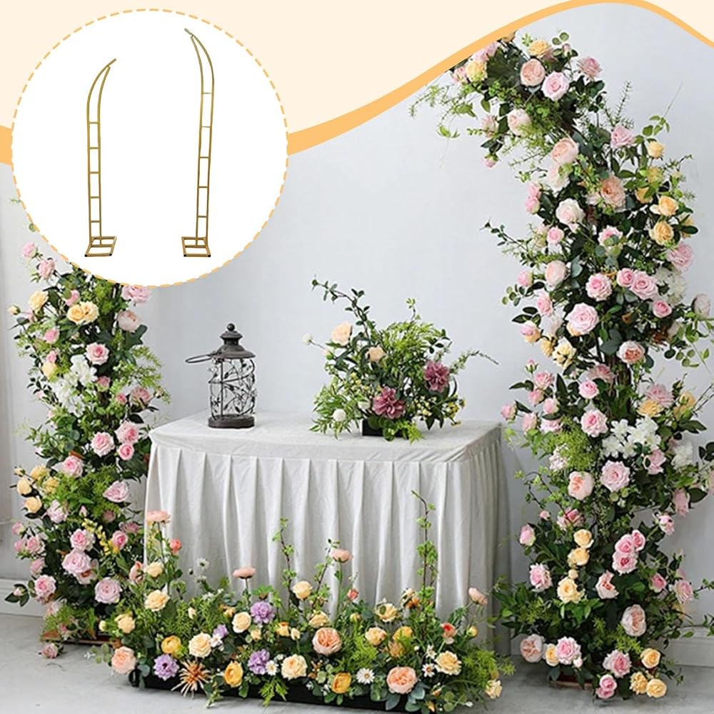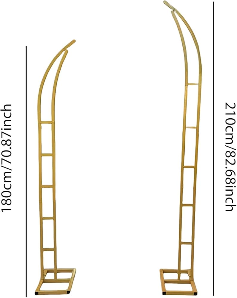 2 Pieces 5.9ft & 6.9ft Metal Wedding Arch Curved Top Multipurpose Semi Open Design for Indoor/Outdoor Events Backdrop Stand, Golden