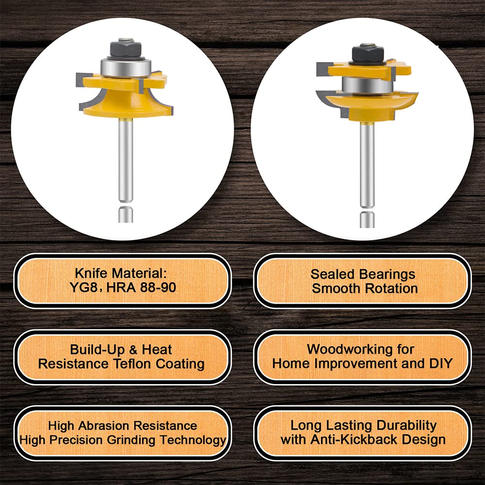 • {Premium Size}--These bits cut ogee rail and stile cabinet door frames . They feature 1/4" shanks. Create rail and stile cabinet door frames. Premium C3 micro-grain tungsten carbide blades for a sharper & longer lasting edge.