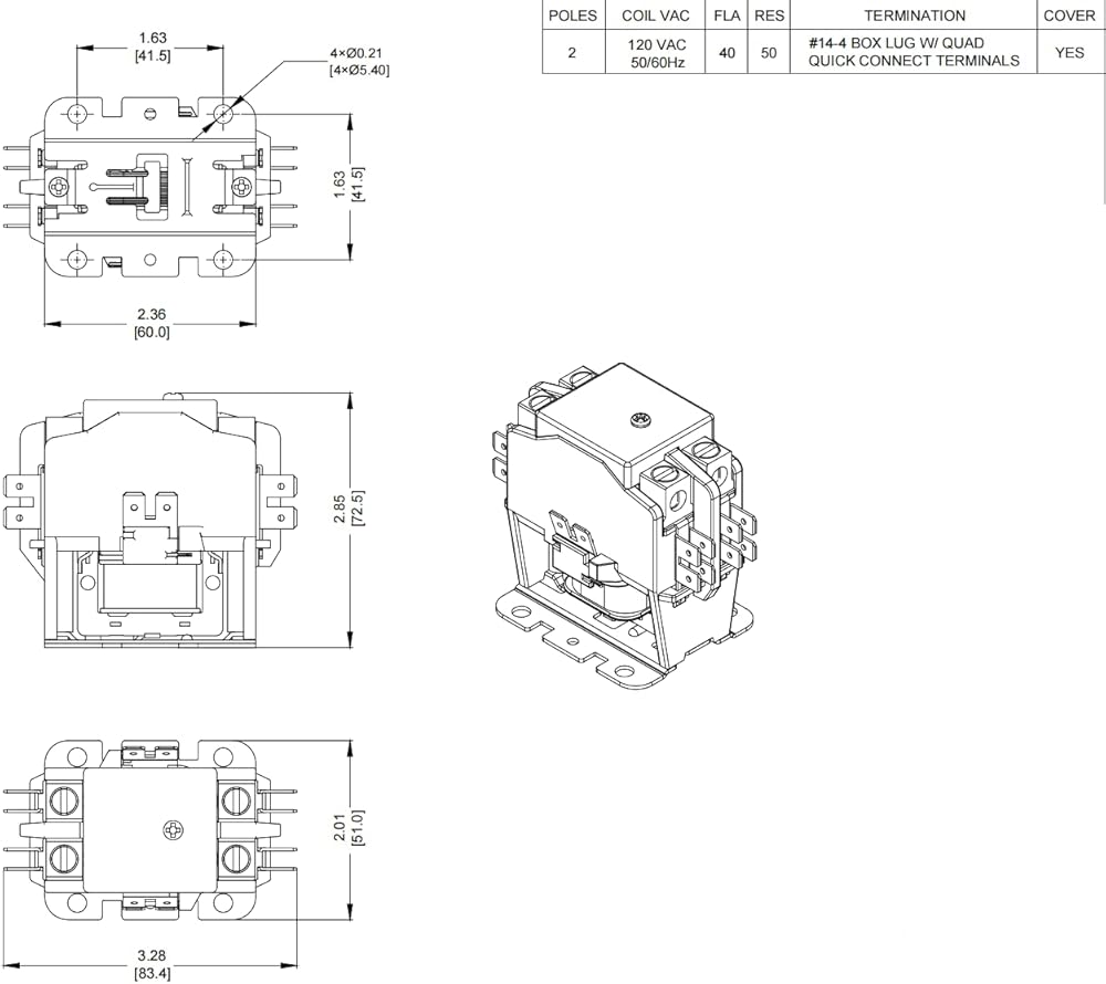 40 FLA Amp Rating - 2 Pole - 120 Volt Coil. Replaces Most 2 Pole Contactors Rated at 20 Amps, 25 Amps, 30 Amps, 35 Amps, or 40 Amps on Air Conditioners and Heat Pumps