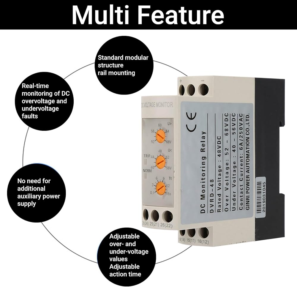 REAL-TIME MONITOR: The overvoltage undervoltage protector relay is convenient to use, real-time monitoring of dc overvoltage and undervoltage faults