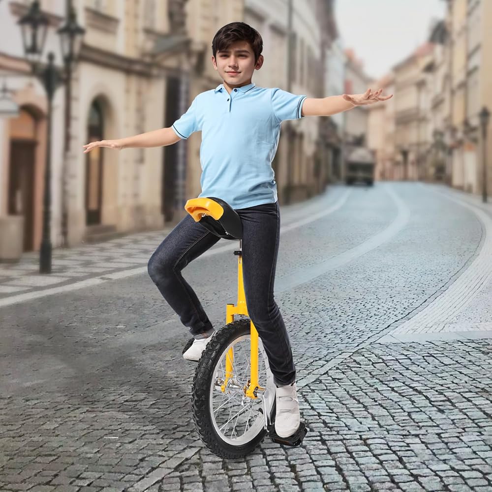 This 16-inch unicycle will provide you with a unique fitness experience, enhancing your physical fitness while improving your riding balance. The grips on the front and back of the seat and the lightweight body make it easy to carry, allowing you to maneuver through crowded city streets or on park trails, bringing you a different travel experience.
