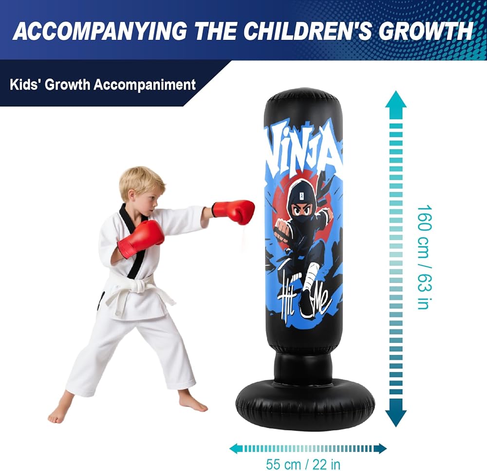 IDEAL SIZE: Standing at 63 inches tall when fully inflated, this punching bag is perfect for kids 3 years and up. Its sturdy base offers extra stability, ensuring it won't topple easily during intense play. The design helps children burn energy and stay active in the comfort of their home.