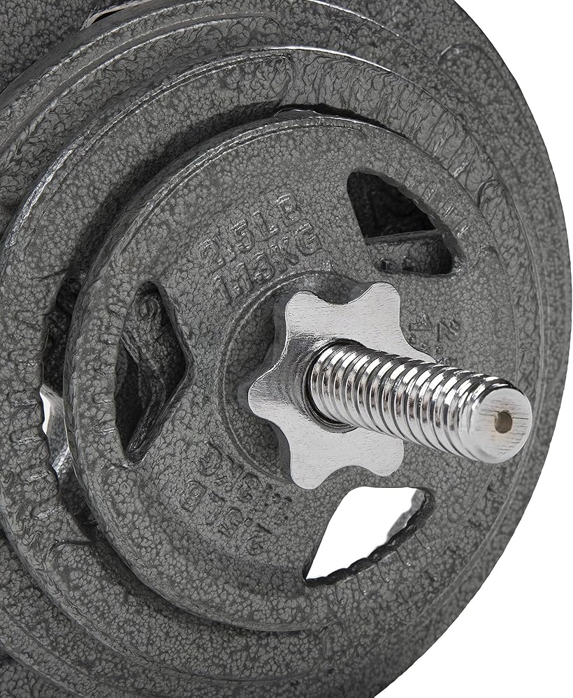 The plates are made of solid cast iron with a 1-inch center hole that fits any standard bar with a diameter of 1". They can also be used with 1" dumbbell bars.