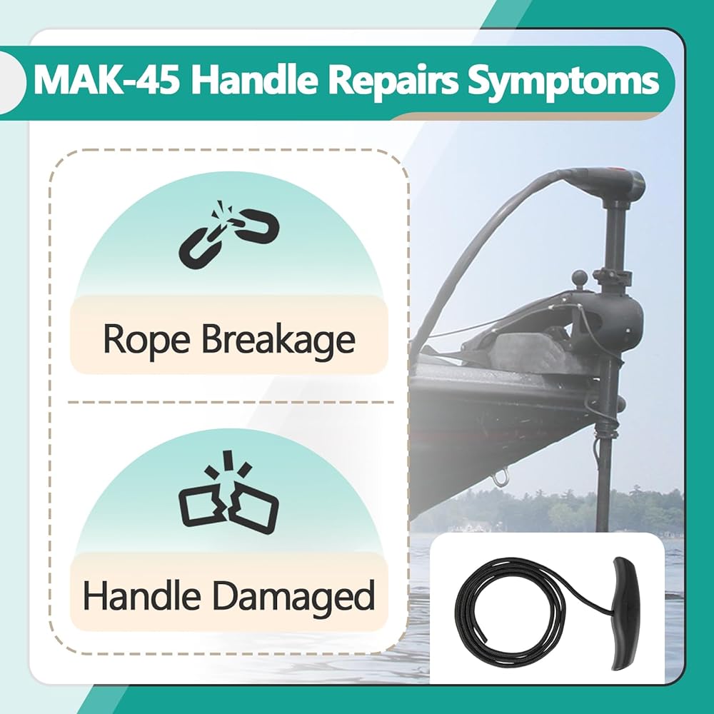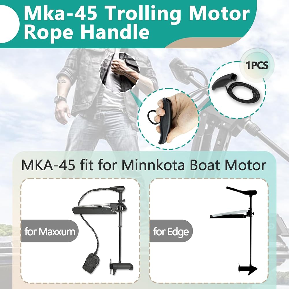 Premium Durability: Crafted from high-strength nylon rope and rugged hard plastic, the MKA-45 trolling motor handle resists stretching, corrosion, and wear, delivering long-lasting performance in harsh marine conditions