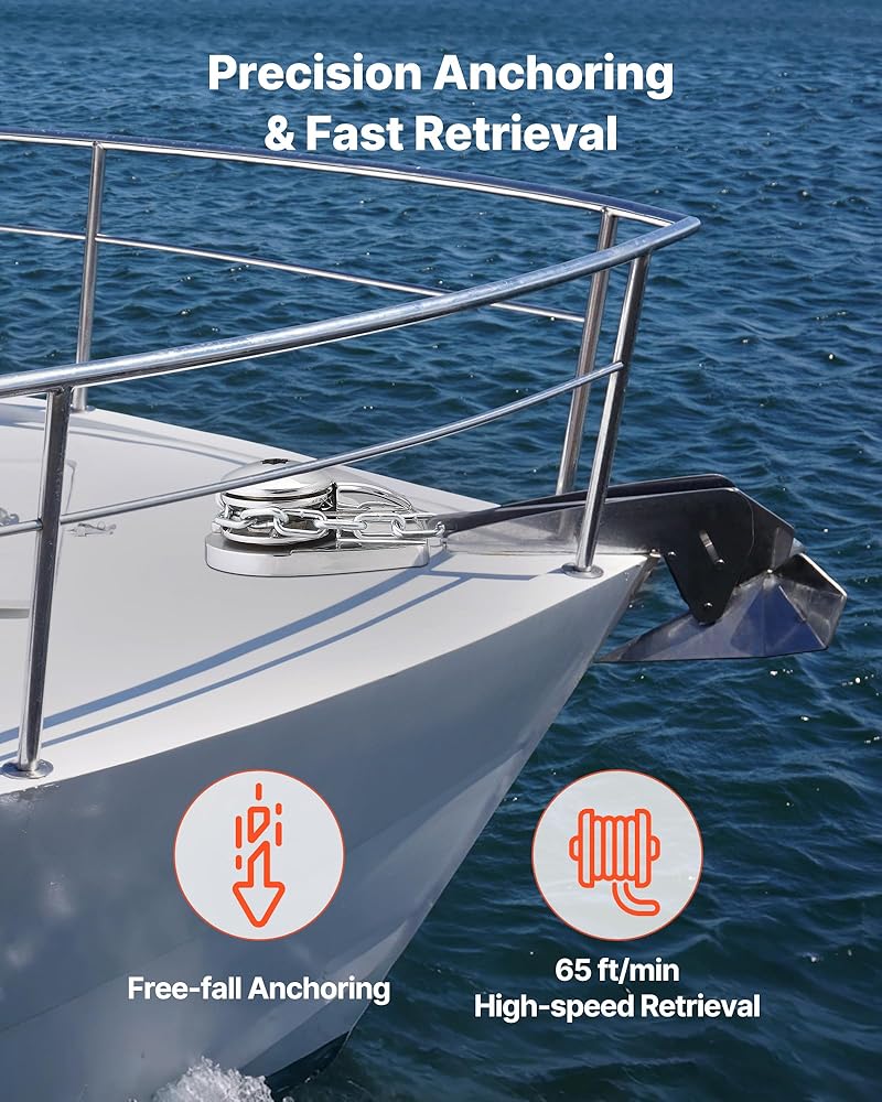 Efficient Anchoring: This windlass uses a free-fall design for quick anchor drops. With 700 lbs pulling force and 65 ft/min retrieval speed, it keeps your anchoring fast and steady in strong currents