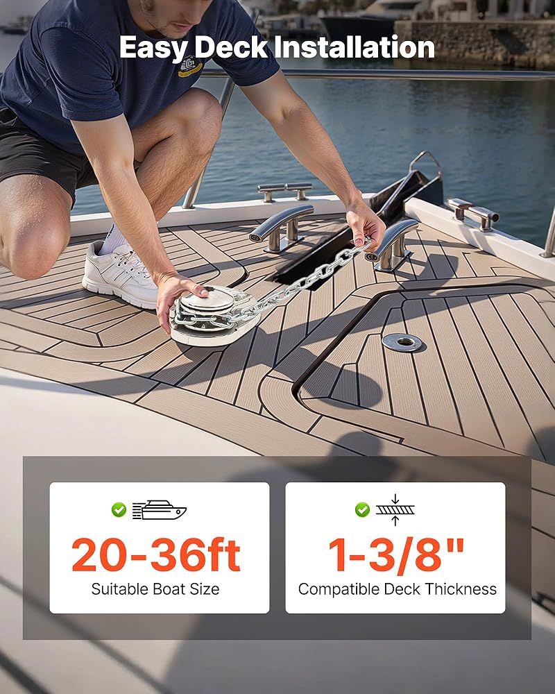 Easy Installation: The windlass anchor system is designed for 20-36 ft boats and mounts directly on 1-3/8 in decks. You can install it quickly without extra modifications and get ready to sail in no time