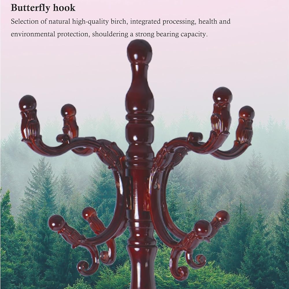 【Natural Solid Wood】The wooden coat rack is carefully selected from natural birch wood. The wood coat rack freestanding has a natural texture, which is tough and sturdy, wear-resistant and not easy to crack. Coat tree hanger can hang handbags, hats, keys, backpacks, scarves, ties, or any other small things you want.