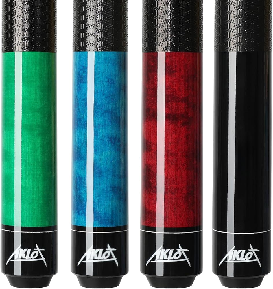 Color Translucent Wood Finish: Deep-immersion dyed butts (Green-18oz/Black-19oz/Burgundy-20oz/Blue-21oz) with 9-layer UV varnish. Effortless weight identification for Billiard Pool Sticks
