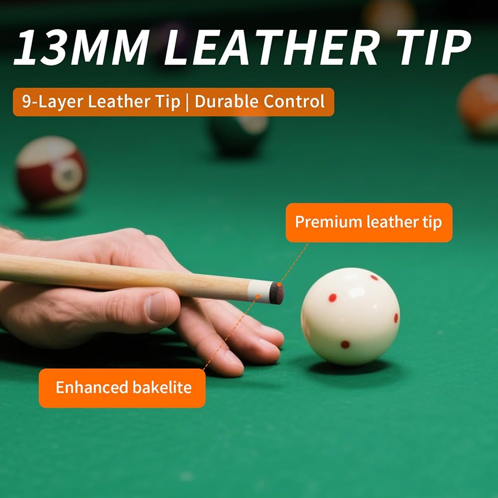 Multi-Layer Leather Tip & Reinforced Ferrule: Compressed premium leather tip optimizes spin control. Carbon-fiber ferrule resists deformation on pool sticks. Rigorously tested for high-impact breaks