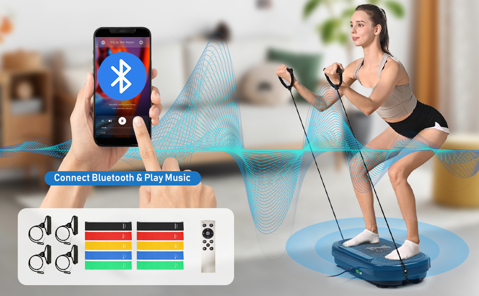 【Vibration Plate Exercise Machine】Vibration Plate Exercise Machine improves muscles, energy balance, circulation, and reduces joint tension. including 4 loop bands, 10 resistance bands, remote control, and it comes with a Bluetooth function. (Get started with everything you need)