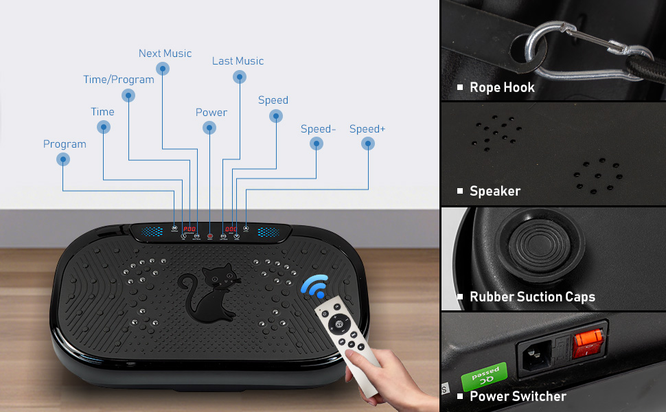 【Smart Connectivity & Easy Control】 Built-in Bluetooth speakers let you stream music wirelessly during workouts. The clear LED panel displays time, speed, and mode in real-time. Control all settings effortlessly with the included remote—no bending needed. Our products are manufactured by the top professional factory, each product has been rigorously tested. you can enjoy our vibration plate absolutely risk-free.