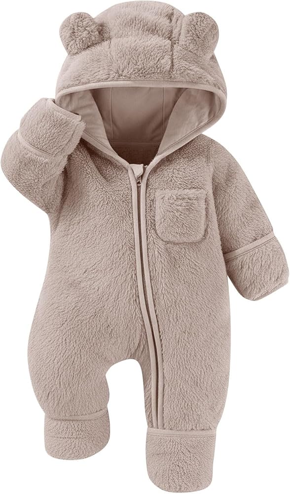 Newborn Baby Snowsuit Baby Girl Boys Clothes Winter Warm Fleece Hooded Romper Jumpsuit Infant Costume 0-12 Months
