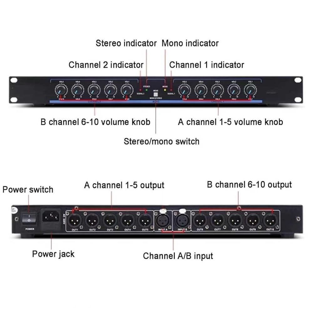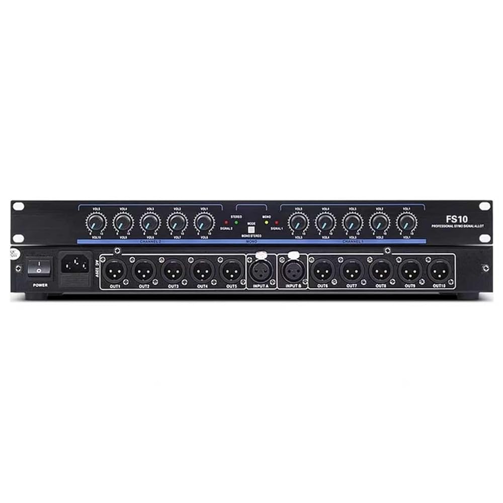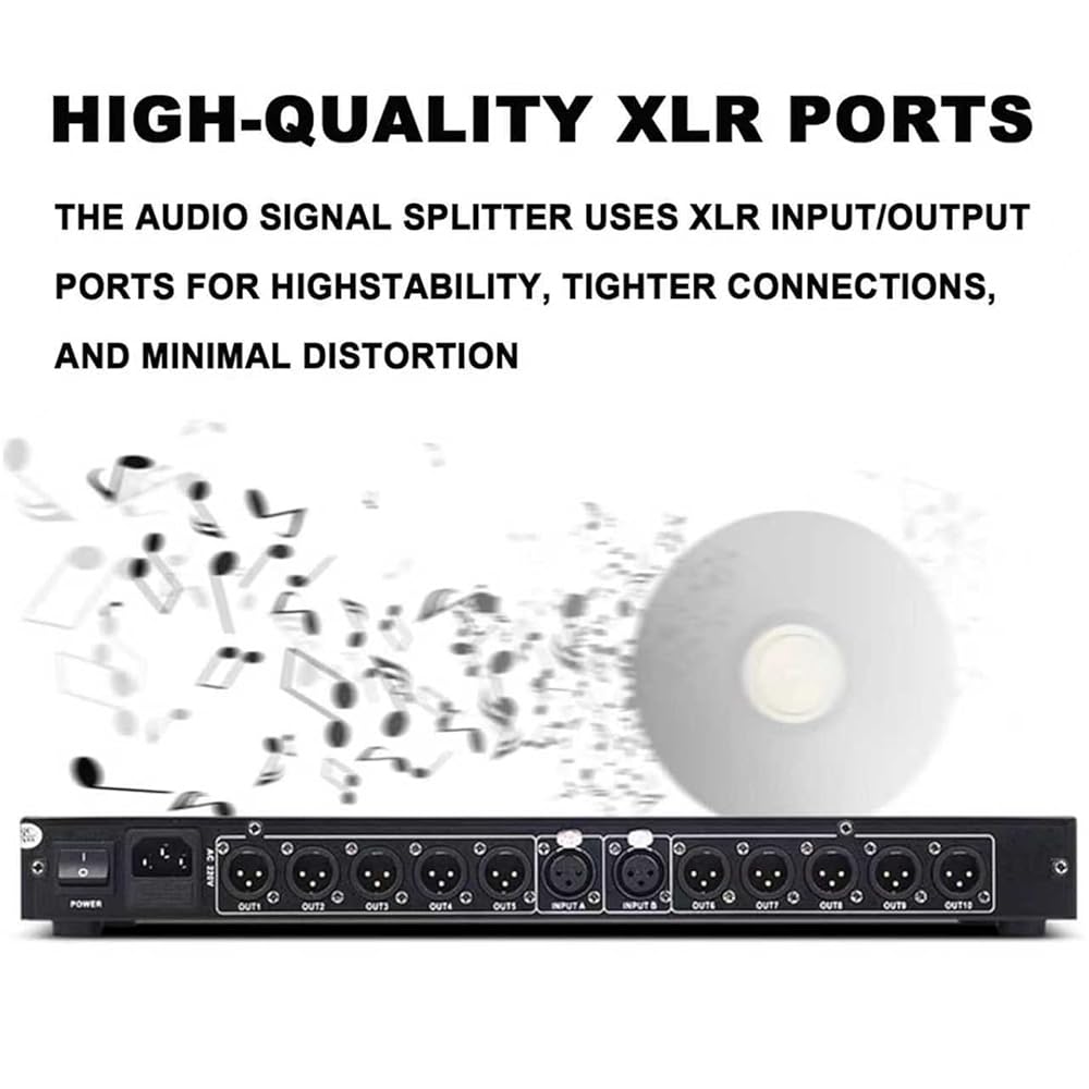 1. 2 Inputs and 10 Outputs: Effortlessly distribute audio signals to multiple devices.