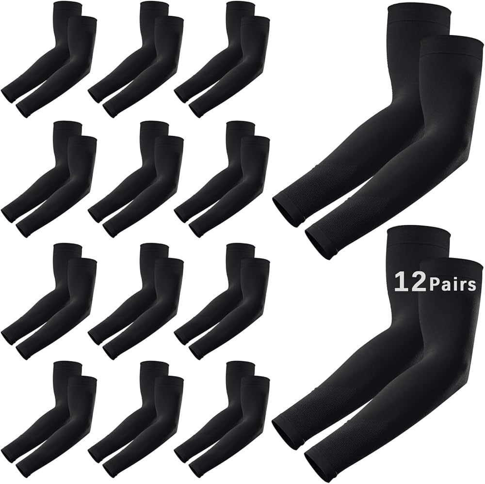 【Soft material】:6 Pairs black arm sleeves is made of a durable blend of 90% polyester and 10% spandex, The fabric combination ensures a seamless structure that fits comfortably, hugging your arms without irritation, Arm sleeves are available in one size and are suitable for both men and women
