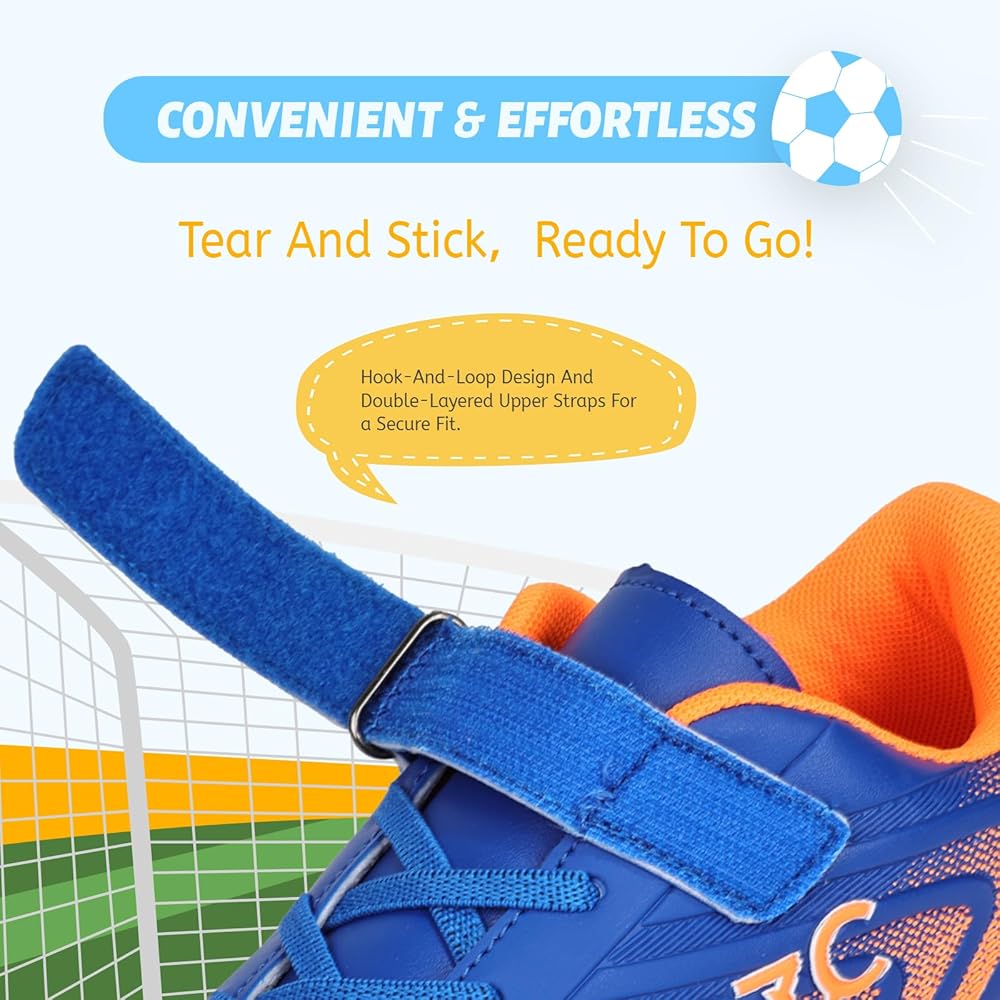 Perfect for outdoor use, soccer cleats have firm ground soles with 10 molded TPU studs. These football shoes don't have metal plates and are completely safe for children. Suitable for little kid / big kid used in football court, rugby field, baseball field, sports hall, road and so on.