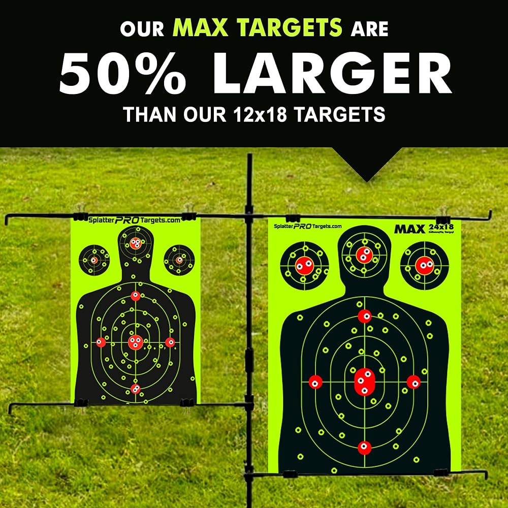 Extra Large Targets, perfect for long distance shooter. The LARGE contrasting SPLATTER around your shots makes them visible in all lighting conditions.