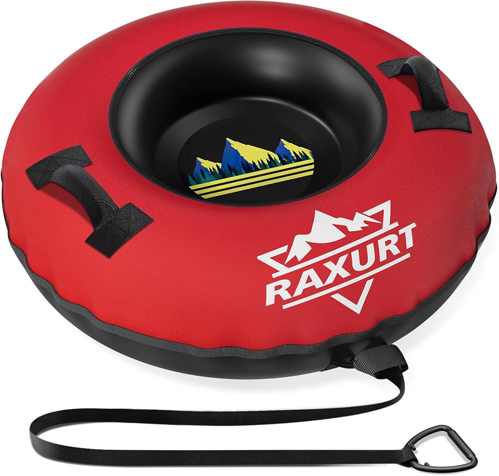 Raxurt Heavy Duty Snow Tube with Premium Canvas Cover for Adults, 48'' Inflatable Snow Sled Made by Thickened Bottom, Sledding Winter Outdoor Fun Toys for Boys Girls