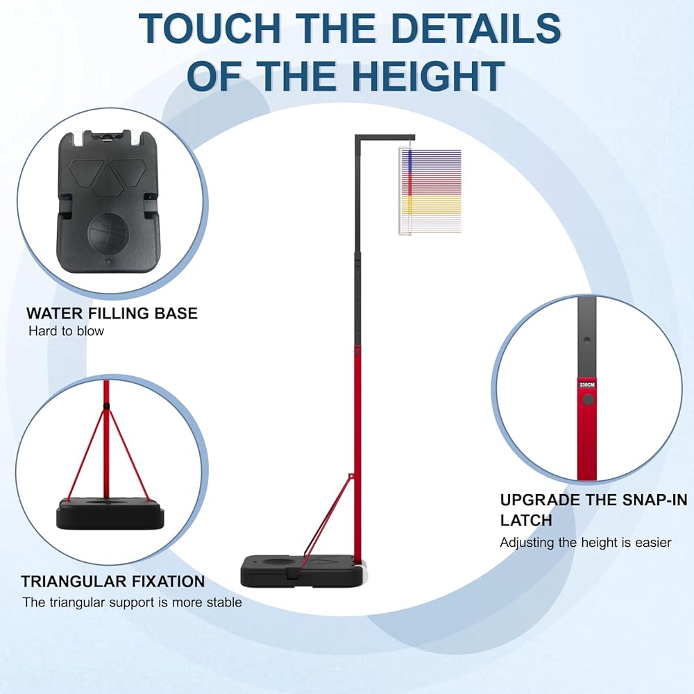 Plastic Base with Wheels: The base is made of plastic, and when you receive it, you can inject water or add sand from the base inlet to increase the weight of the base, making the vertical jump trainer more stable and less prone to shaking. The wheels on the base allow you to move easily