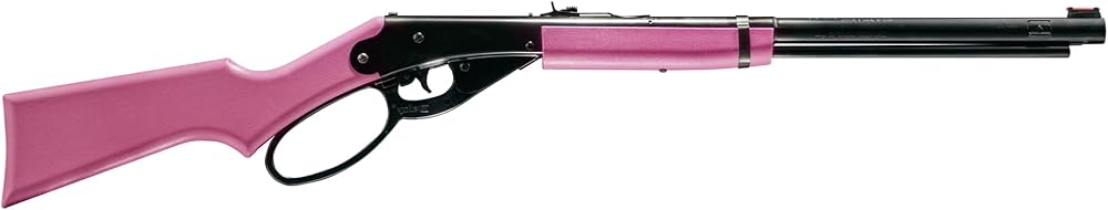 The Daisy Pink Lever Action Carbine Model 1999 is a Western-style BB gun with a modern twist. features everything youth look for in a BB gun, including 350 feet per second velocity with a standard .177 caliber BB, a n oversized loop lever, a blade-and-ramp fiber optic front sight and adjustable rear sight. to this the pink wood stock and forearm and you've got a unique BB gun for introducing youth to the fun and excitement of shooting. INCLUDES: Daisy Pink Lever Action Carbine Model. Max 750 count BB tin. shooting glasses. fun pack.