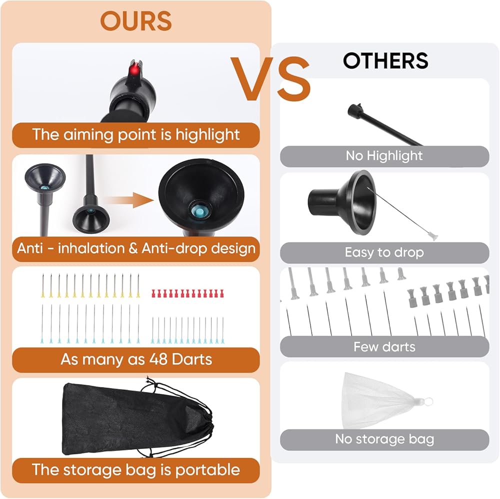 Blow Dart Gun for Hunting, Hunting Blow Guns for Adults & Blowguns for Hunting: Unique Design: This blow dart gun for adults features an exclusive fiber optic sight that creates a small bright dot in light—use this dot to aim at targets (ideal for hunting scenarios) for improved accuracy. The mouthpiece is designed to prevent darts from being inhaled or falling out, enhancing safety for adult users.