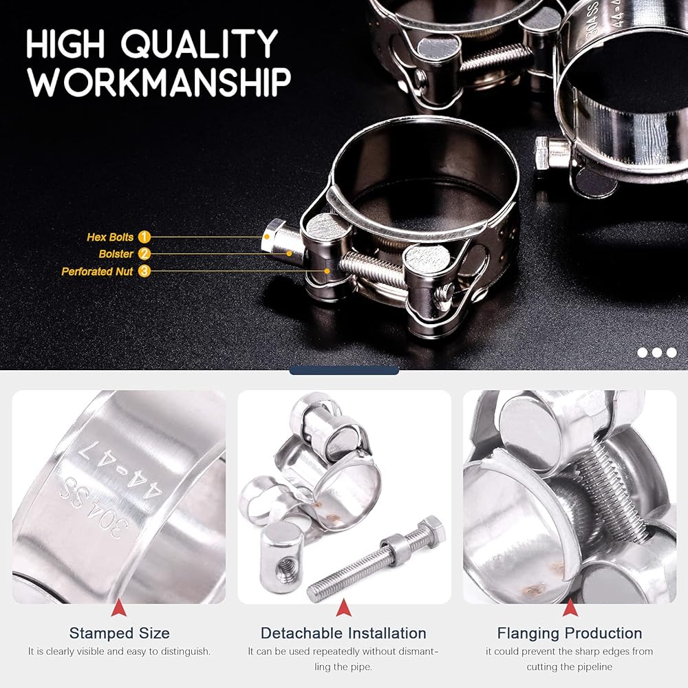 ✅【EASY AND QUICK INSTALLATION】Removable installation, clamps can be installed without disconnecting the pipe. High hardness and it is not easy to deform, stainless steel screws, large torque.