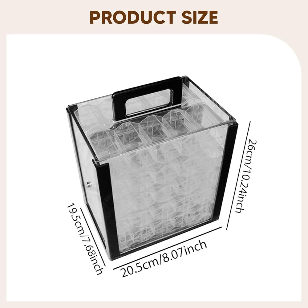 - 【Compact & Portable】: Acrylic Chip carrying case measures 20.5 x 19.5 x 26 cm, featuring a convenient handle for easy transport to game nights or events