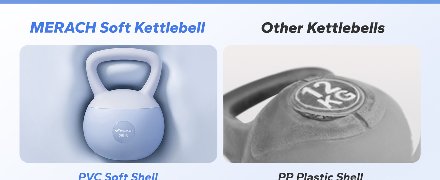 [ Safe Materials, Gentle Touch ] Crafted with high-quality PVC, MERACH soft kettlebells is boasting a soft touch that ensures comfort even during prolonged grips, safeguarding your hand skin
