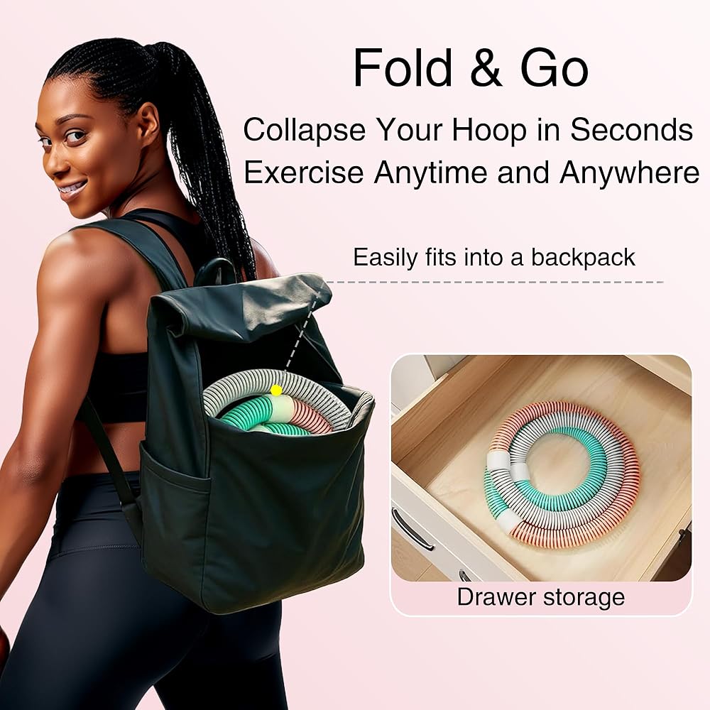 Weighted 3lb Fitness Hoop for Adults - Soft Spring Hula Hoop - Flexible, Foldable for Home & Travel - Cushioned Comfort, Silent Exercise for Waist Toning & Weight Loss