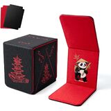Venssu Chinese Takeout MTG Deck Box, Commander Deck Case Fits 100 Double Sleeved Cards, PU Leather Storage Box with 2 Dividers, Compatible with TCG/PTCG/EDH/Magic/Sport Cards (Black and Red)