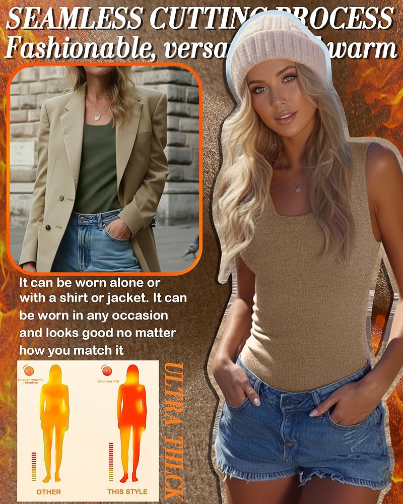 Layering Flexibility: this fleece lined tank top women layers seamlessly under coats, jackets, or sweaters for added warmth; Pair with jeans for errands, skirts for outings, or loungewear at home; It adapts to sneakers or boots, letting you craft casual to polished looks easily