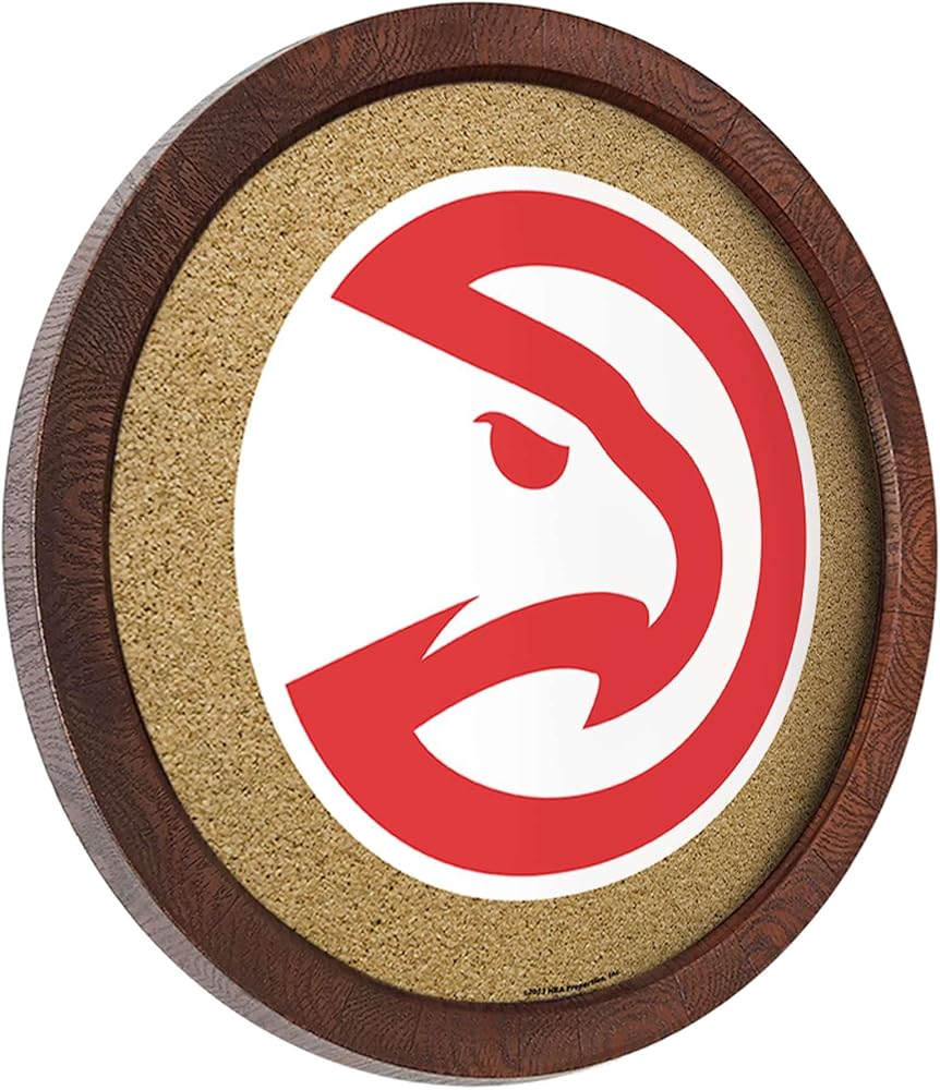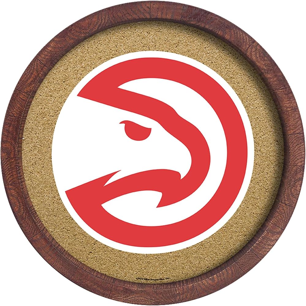The Fan-Brand NBA Atlanta Hawks: Faux Barrel Framed Cork Board- Sports Decor for Home, Game Room, Fan Cave & Garage - USA Made