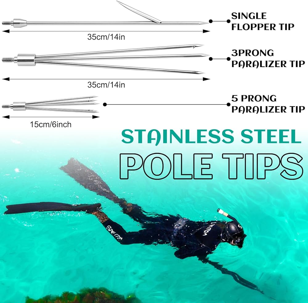 Reliable and Practical: constructed from fiberglass, our spear fishing pole has strong durability in underwater environments when pole spears spearfishing, our diving glove is cut-proof durable and flame-retardant, very suitable for underwater diving or spearfishing