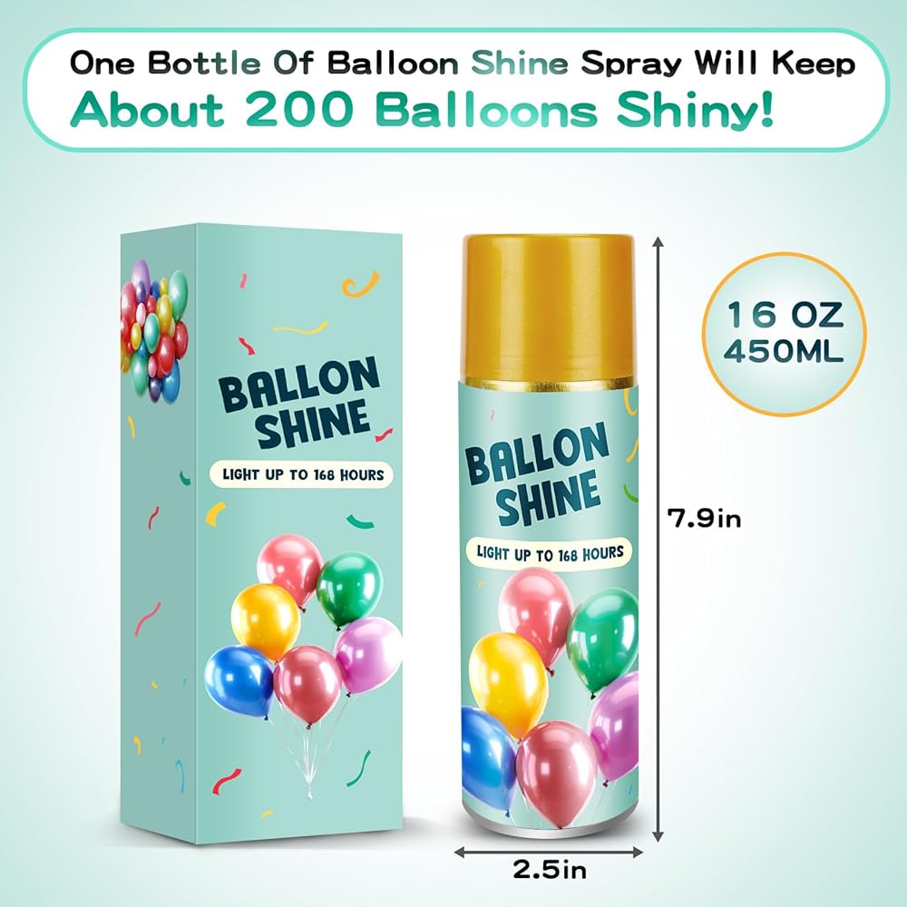 【Keeps Shining Over 7 days】The Balloon Shine Spray's upgraded formula keeps balloons shining for over 7 days and is waterproof at both indoor and outdoor events, ensuring your balloons maintain a brilliant shine in any weather