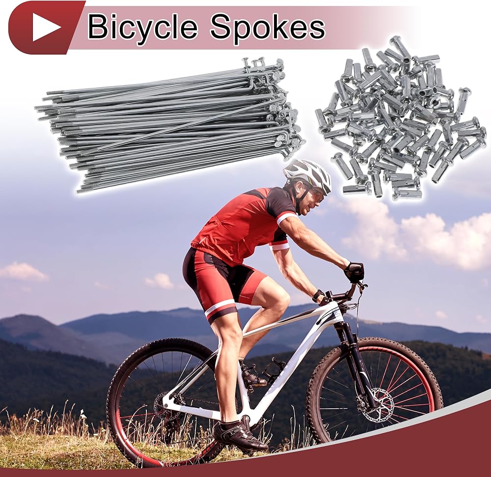 The wheel spoke kit contains enough spokes and nipples to rebuild your bicycle wheels.