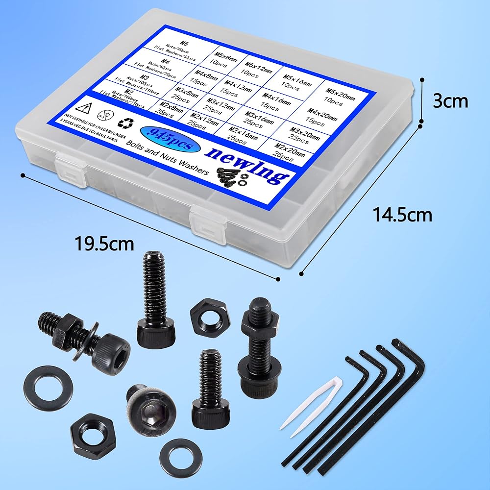 【M3 M4 M5 M6 screws and nuts set size】M3x16, M3x20,M3x25, M3x30, M4x16,M4x20, M4x25,M4x30, M5x16, M5x20, M5x25, M5x30, M6x20,M6x25, M6x30,M6x40 in different sizes. A total of 680pcs of screws, nuts, washers and spacers. Bolts and nuts comply with metric standard, studs YB819, nuts DIN934, washers DIN125, spring washers GB93.