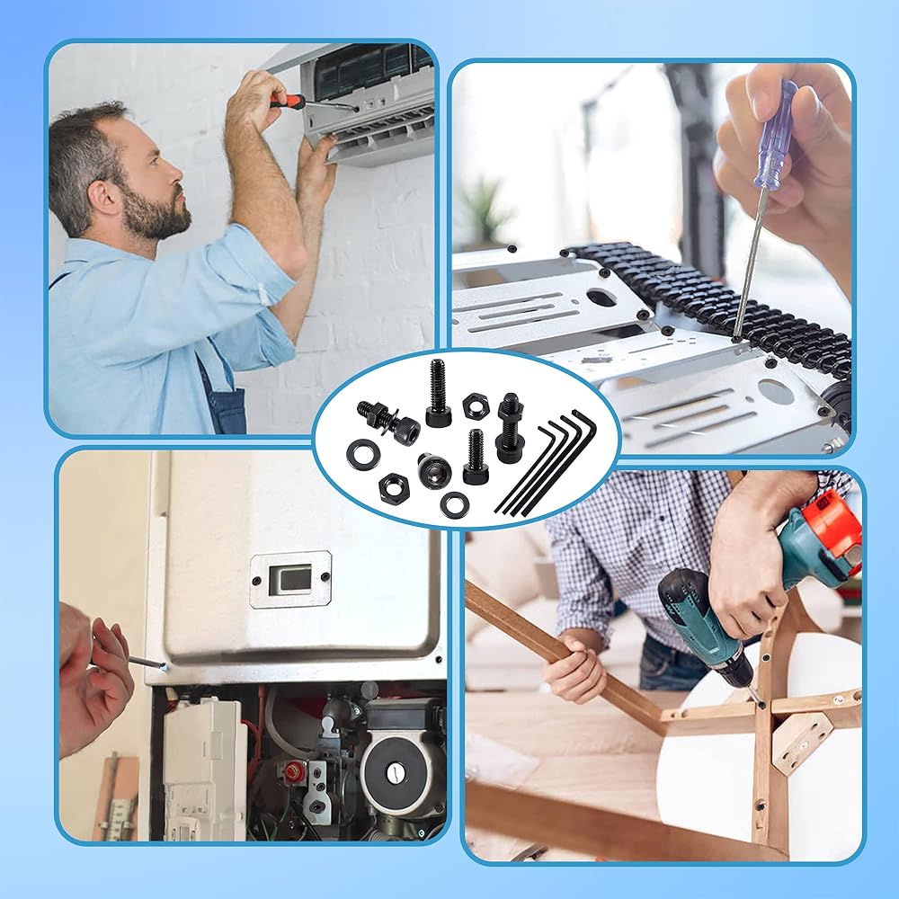 【Complete Hex Bolt Set】Our Thread Bolt Set comes with a full set of screws and hex nuts, retaining rings and washers for more precise installation and an enlarged contact area to reduce loads and protect parts and screws. You can use it appropriately according to actual needs. It will be a good helper for your repair.