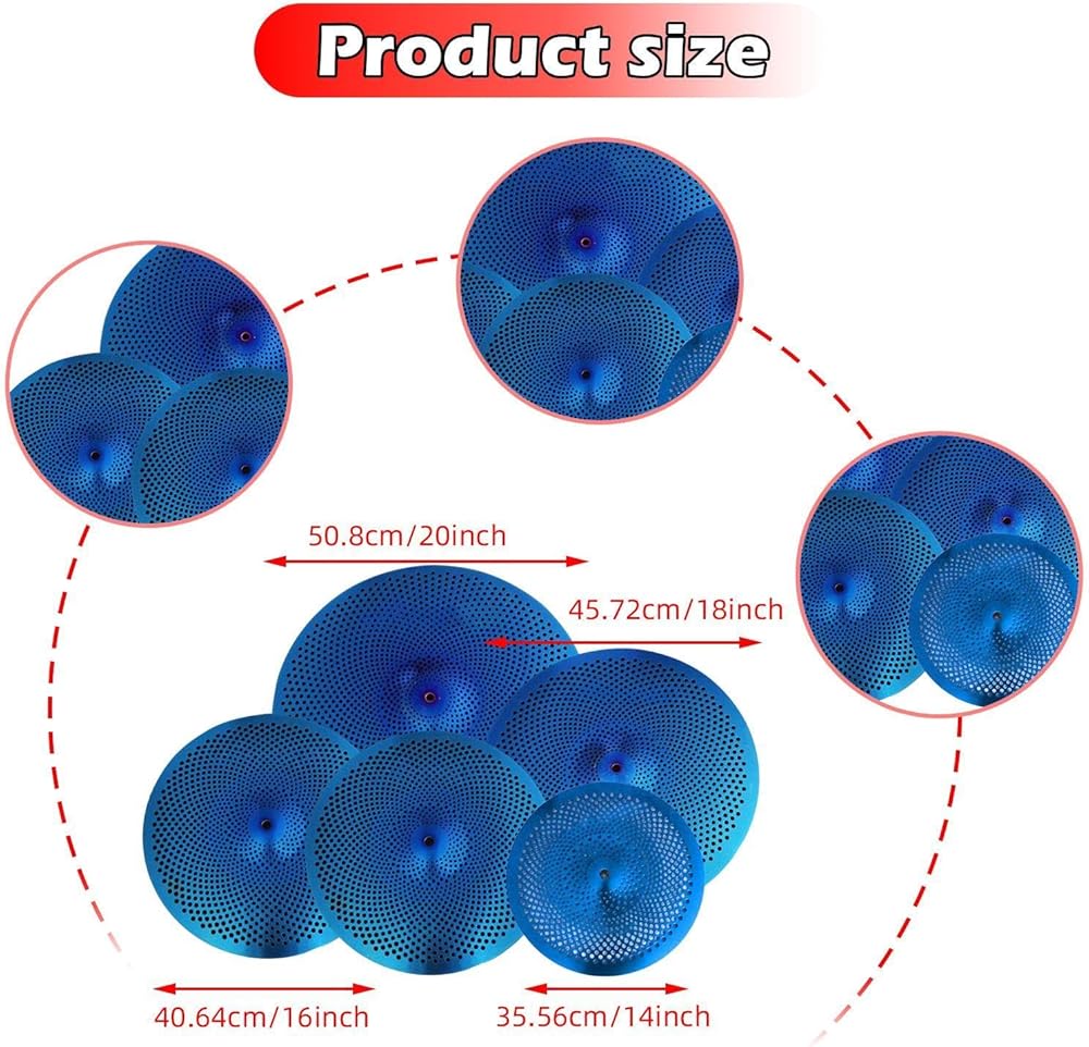 - 【Comprehensive Set Dimensions】: This Mute Cymbal Set includes five pieces with sizes of 14 inches (x2), 16 inches (x1), 18 inches (x1), and 20 inches (x1) to cater to various drumming needs