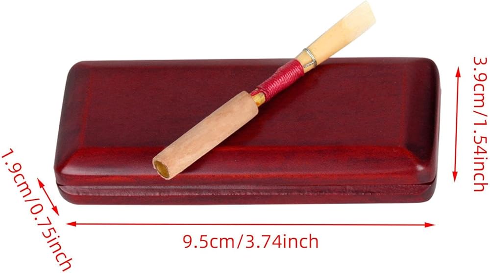 - 【Valued Package】: There are a oboe reeds case and a reeds in package. This oboe reeds storage box is crafted from quality wood material that can withstand daily use and transport. With size 9.5 cmx3.9 cmx1.9 cm/3.74 inchx1.54 inchx0.75 inch