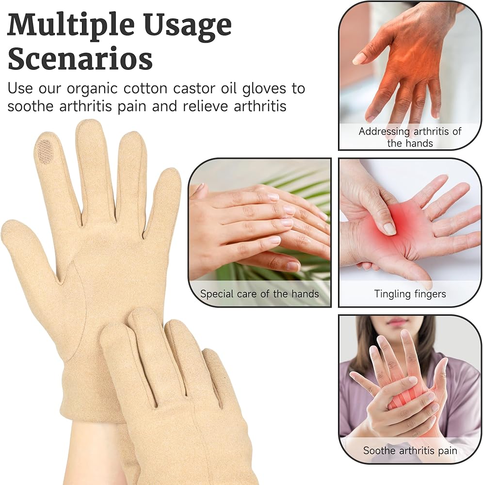 PREMIUM ORGANIC COTTON GLOVES - Made with a high-quality, double-layered design, our castor oil hand wrap features a soft, organic cotton inner layer that is safe, skin-friendly, and comfortable. The outer layer is water and oil-resistant, ensuring no mess during use while protecting your skin