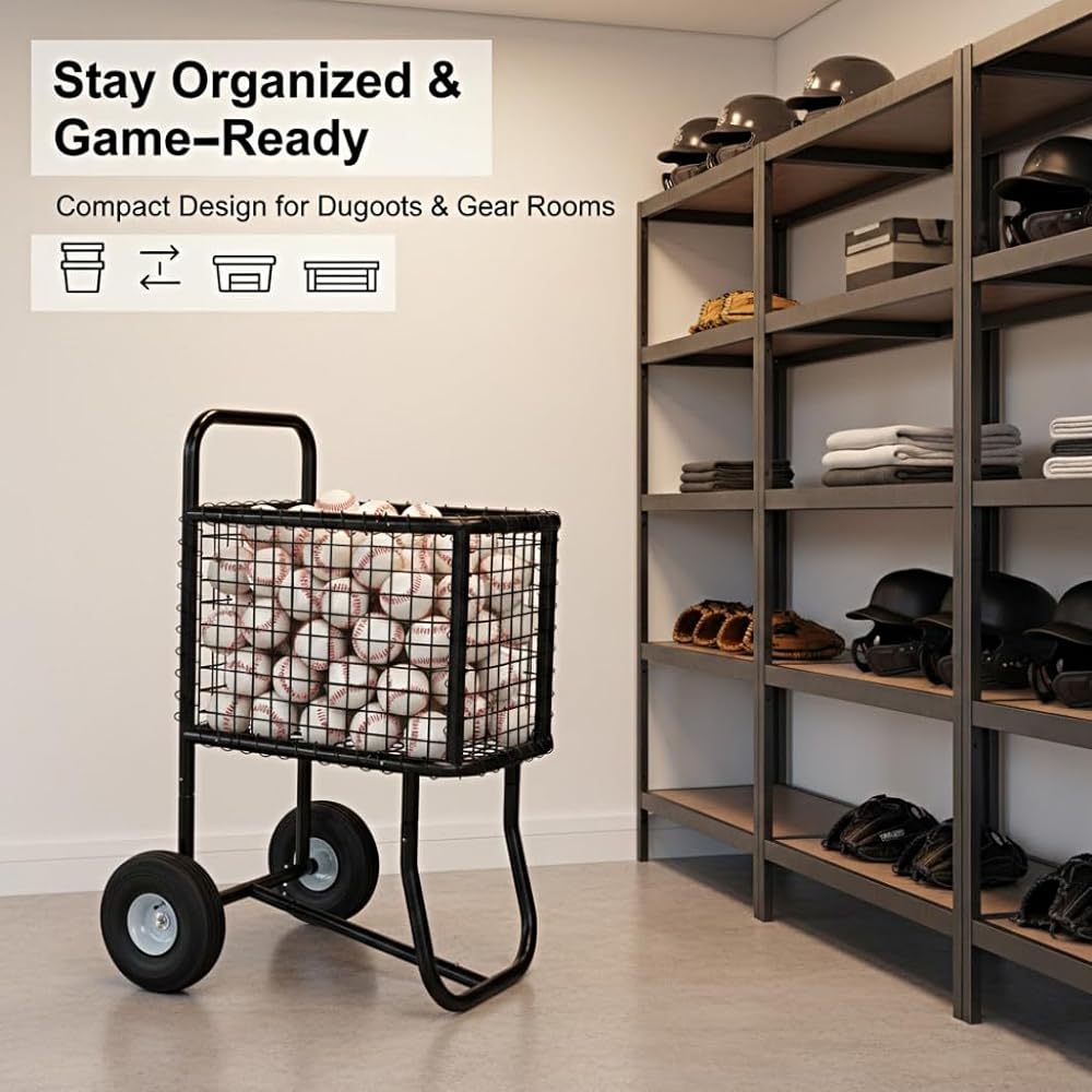 Ergonomic Design Softballs Cart: Elevated cart height reduces bending and fatigue, allowing coaches and players to grab balls easily during drills.