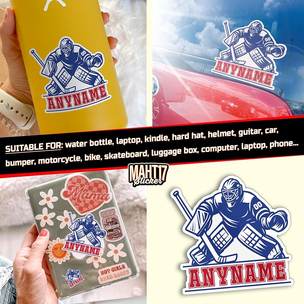 Personalized Jerseys Hockey Sports Player Sticker Custom Goalie Player Name Number Waterproof Vinyl Stickers for Laptop Water Bottle Cars Phone Case Decal Decor Stuff Gifts for Her Him