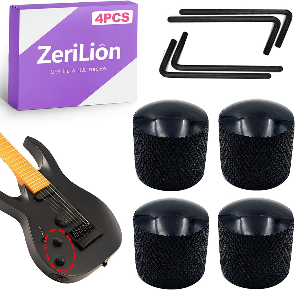 [Secure Fit for Precise Control] Features an integrated side set screw that locks the knob firmly onto the potentiometer shaft, This ensures a reliable, wobble-free connection for accurate volume and tone adjustments